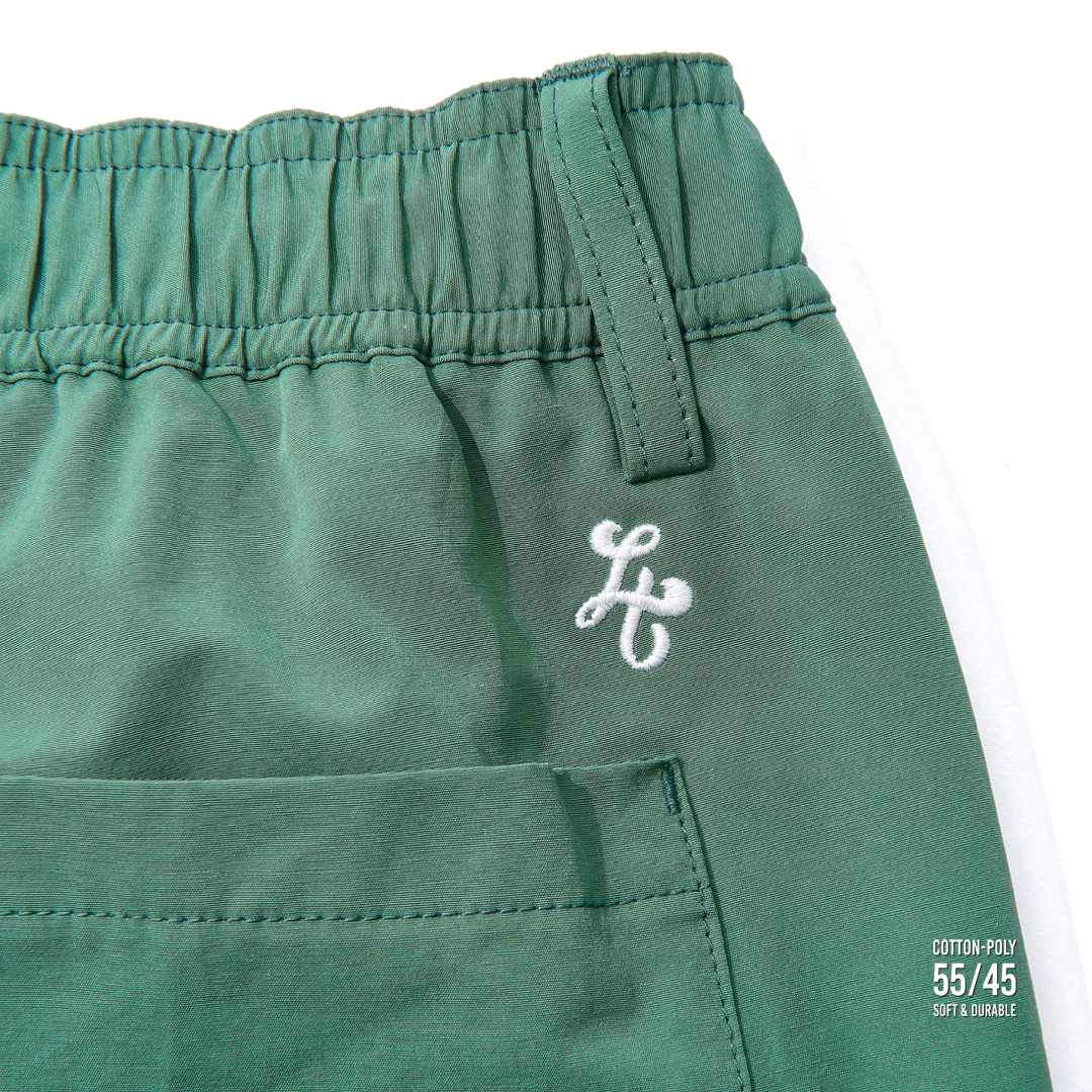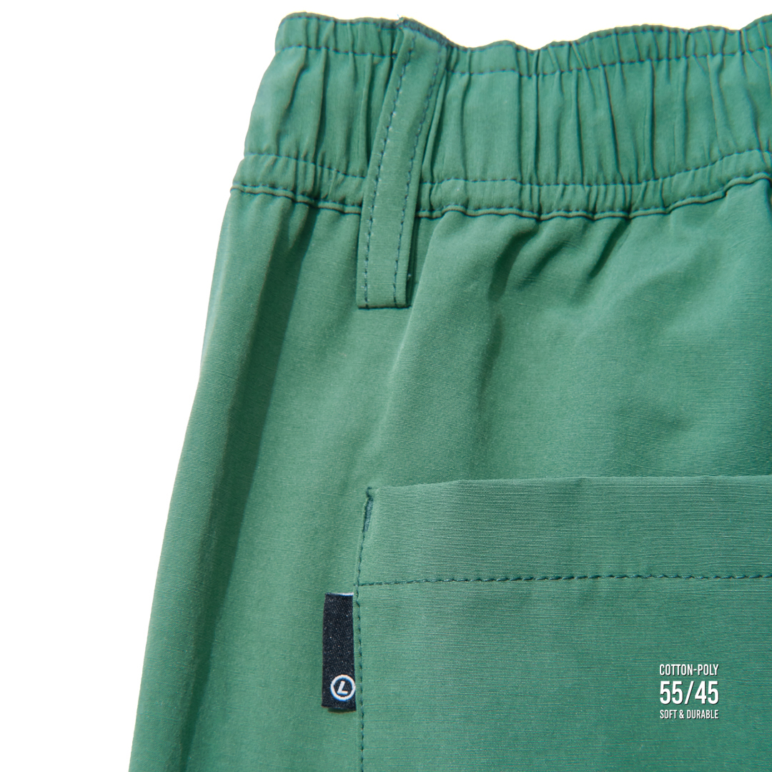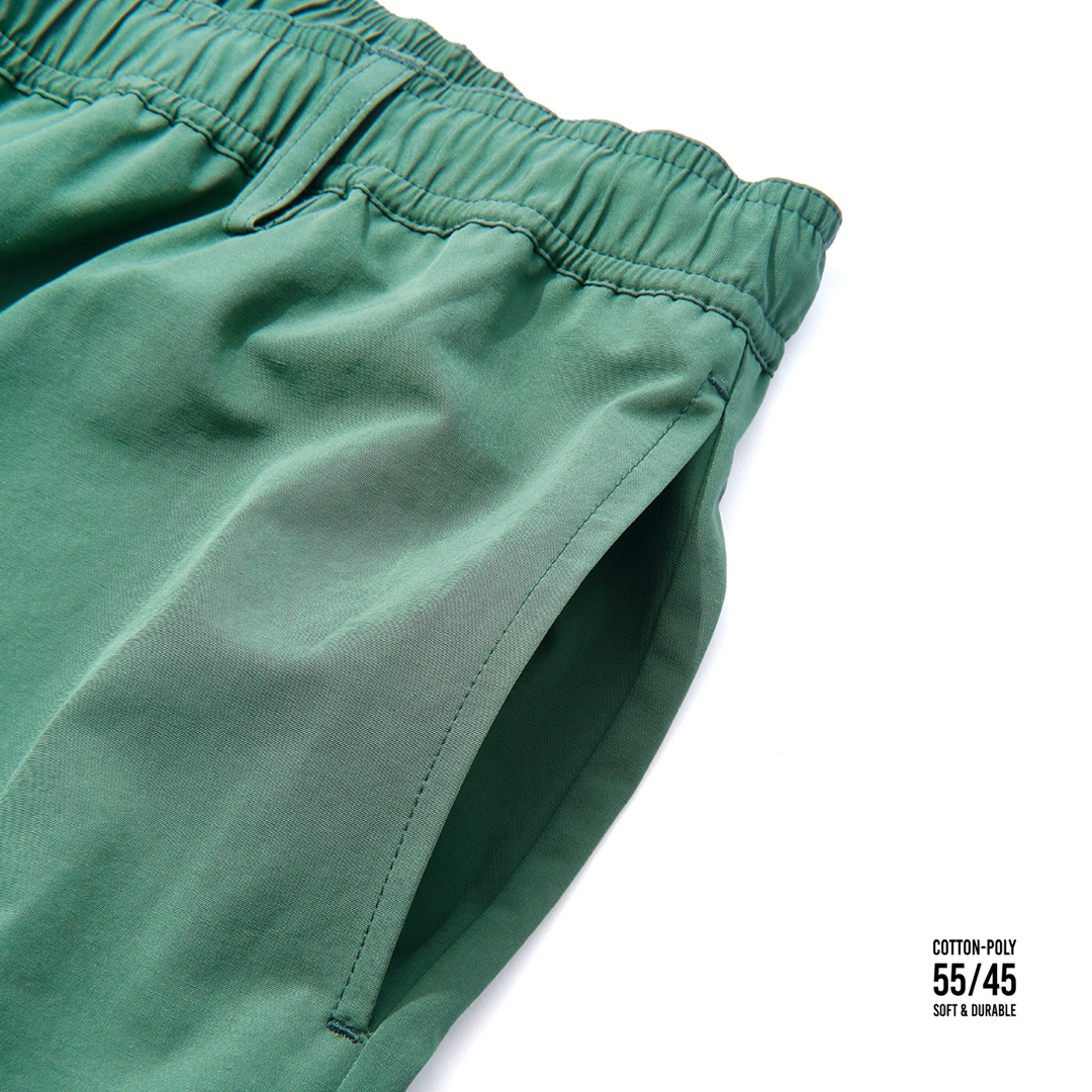 やや大きめのPatch Poket(バック)、物が溢れないやや深めのVertical Poket(サイド)、ピスネームとエンブレム刺繍のみのシンプルなデザイン。 ウエストゴム+紐と一般的なEASY PANTSのスタイルにベルトループ有りと2way仕様の一本。 肝心のSizeは【ONE FITS ALL(168〜175cm推奨)】、ロールアップ(低身長)、クロップド丈(高身長)でもシルエットの崩れない形はパタンナーの業。 クルージングに突っ張る事ないやや太めのシルエットはそのままに、新たな55% Cotton / 45% Polyモデルは、シワを気にせず速乾性とタフで型崩れに強いがCottonの快適さも備え、より軽く、旅行(出張)の際に迷った時の1本として。 もちろんトランクに入れて置けるよう共生地の巾着袋も標準装備。 翌日の着替えに、ホテルでのリラックス時に、咄嗟の替えに、無論デイリーユースにもこれで凡ゆるシーンに対応できる。 ”備えあれば憂いなし”、It’s not just a bag. It’s a Lifestyle.
