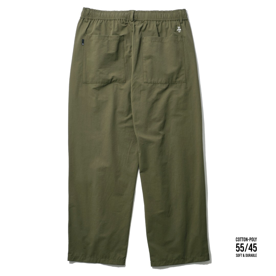 やや大きめのPatch Poket(バック)、物が溢れないやや深めのVertical Poket(サイド)、ピスネームとエンブレム刺繍のみのシンプルなデザイン。 ウエストゴム+紐と一般的なEASY PANTSのスタイルにベルトループ有りと2way仕様の一本。 肝心のSizeは【ONE FITS ALL(168〜175cm推奨)】、ロールアップ(低身長)、クロップド丈(高身長)でもシルエットの崩れない形はパタンナーの業。 クルージングに突っ張る事ないやや太めのシルエットはそのままに、新たな55% Cotton / 45% Polyモデルは、シワを気にせず速乾性とタフで型崩れに強いがCottonの快適さも備え、より軽く、旅行(出張)の際に迷った時の1本として。 もちろんトランクに入れて置けるよう共生地の巾着袋も標準装備。 翌日の着替えに、ホテルでのリラックス時に、咄嗟の替えに、無論デイリーユースにもこれで凡ゆるシーンに対応できる。 ”備えあれば憂いなし”、It’s not just a bag. It’s a Lifestyle.