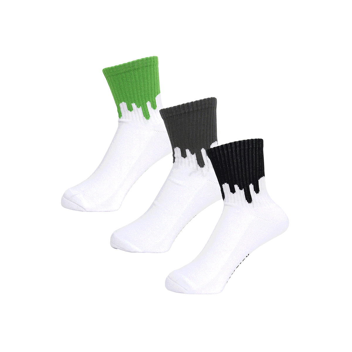 LIXTICK DRIP SOCKS(リックスティックドリップソックス)は、肉厚の柔らかな履き心地、高品質な糸、カラーリング、そしてLIXTICKらしい遊び心を兼ね備えた定番3足組。ただお洒落なだけではなく、履き心地にも妥協のない靴下は、靴に合わせて、気分に合わせて、飽きることなくローテーションできる。 さり気なく見え隠れするドリップはファッションのアクセントにもおすすめ。 伸縮性抜群で、23cm-28cm対応なので女性にも人気のドリップソックスです。プレゼントやギフトに最適なドリップ柄パッケージ仕様。