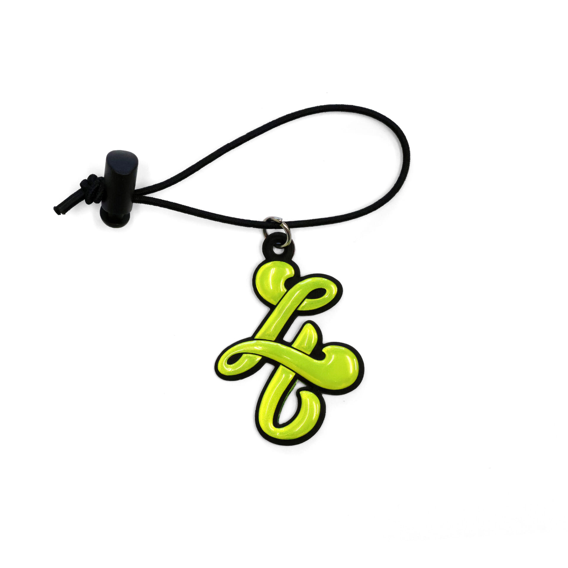 車のライトなdの光が当たると明るく反射するリフレクターキーホルダー。